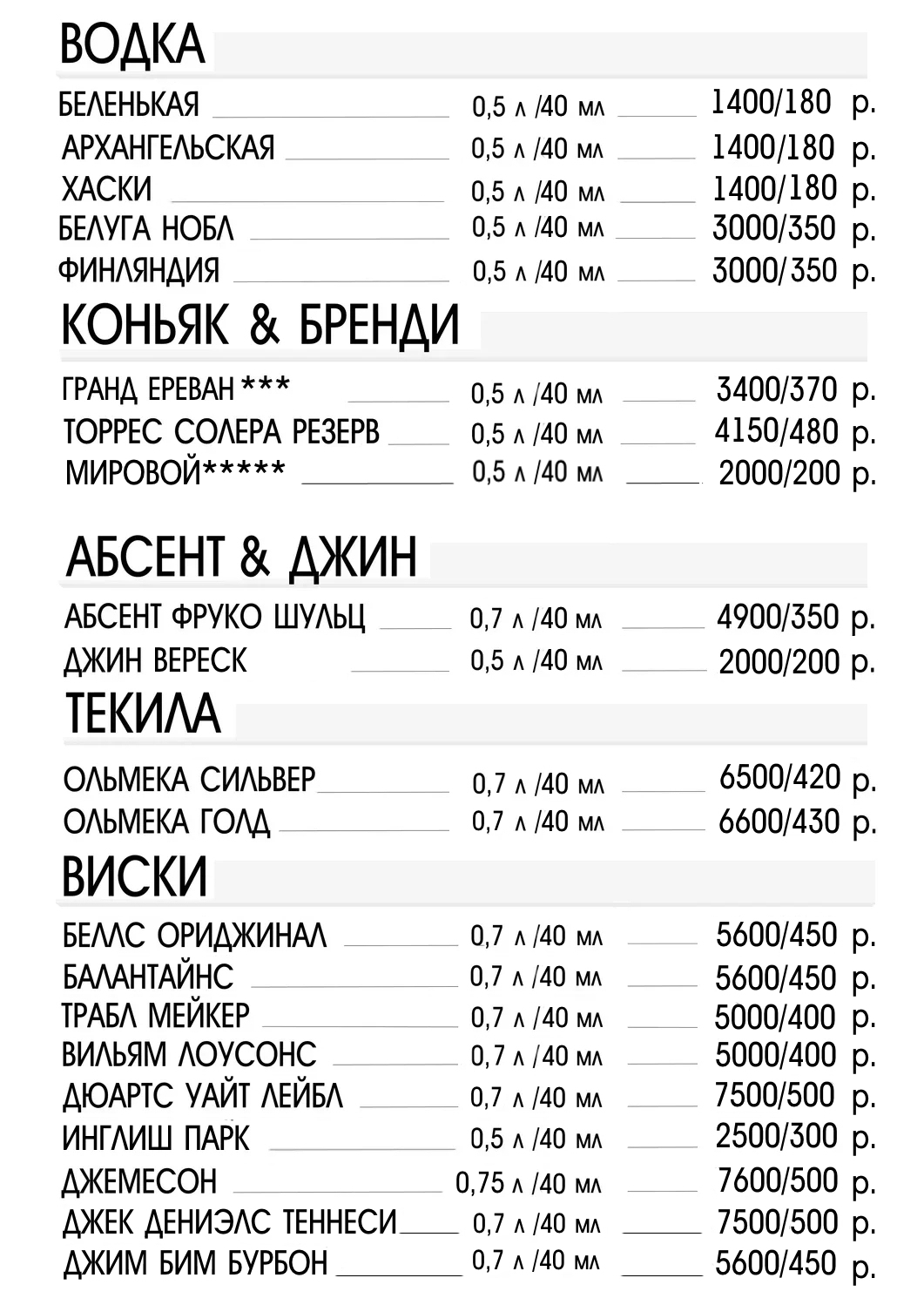 Информация, размещенная на сайте, не является публичной офертой, определяемой положениями пункта 2 статьи 437 ГК РФ. Указанные на сайте ассортимент и цены могут отличаться от действующего ассортимента и цен на сегодняшний день. Актуальные ассортимент и цены уточняйте у дежурного администратора клуба, на баре или у официантов.